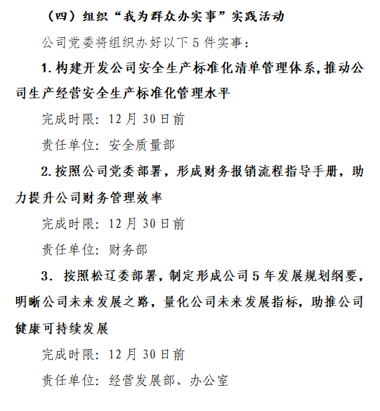 QY球友会以“打造高质量现代水利企业”这一愿景,将制定形成《QY球友会2021—2025年发展规划纲要》,明晰公司未来发展之路,助推公司健康可持续发展确定为本次“我为群众办干实事”实践活动之一。