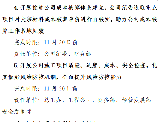 在“我为群众办实事”实践活动中,为加强对项目成本的管理和控制,公司党委结合项目管理特点,开展推进公司成本核算体系建立,制定行之有效的控制措施,不断对项目人员成本、大宗材料成本以及机械成本等各类成本进行有效控制。