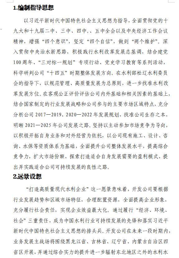 2021年,恰逢“十四五”开局、建党100周年,QY球友会以规范管理、高质量发展为总原则,进一步找准水利改革发展方位,探索建立符合自身实际情况、符合业务发展要求、适应市场竞争需要的可持续发展之路。在客观公正评价评估公司内外基础和相关因素的基础上,结合国家制定的行业发展战略和公司参与的主要市场区域特点,充分分析公司2017~2019、2020~2022年发展规划,找准公司生存之本,在以往四期发展规划基础上,特制定《QY球友会2021~2025年发展规划纲要》。《纲要》明晰2021~2025年公司发展的经营管理思路,分析公司发展的有利因素及存在的主要问题,提出适合公司持续发展的保障措施,为公司健康可持续发展提供了重要依据。